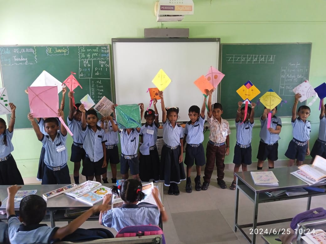 வண்ணத்தாள் கொண்டு பட்டம் செய்து பறக்க விட்டு மகிழ்ந்தனர்.