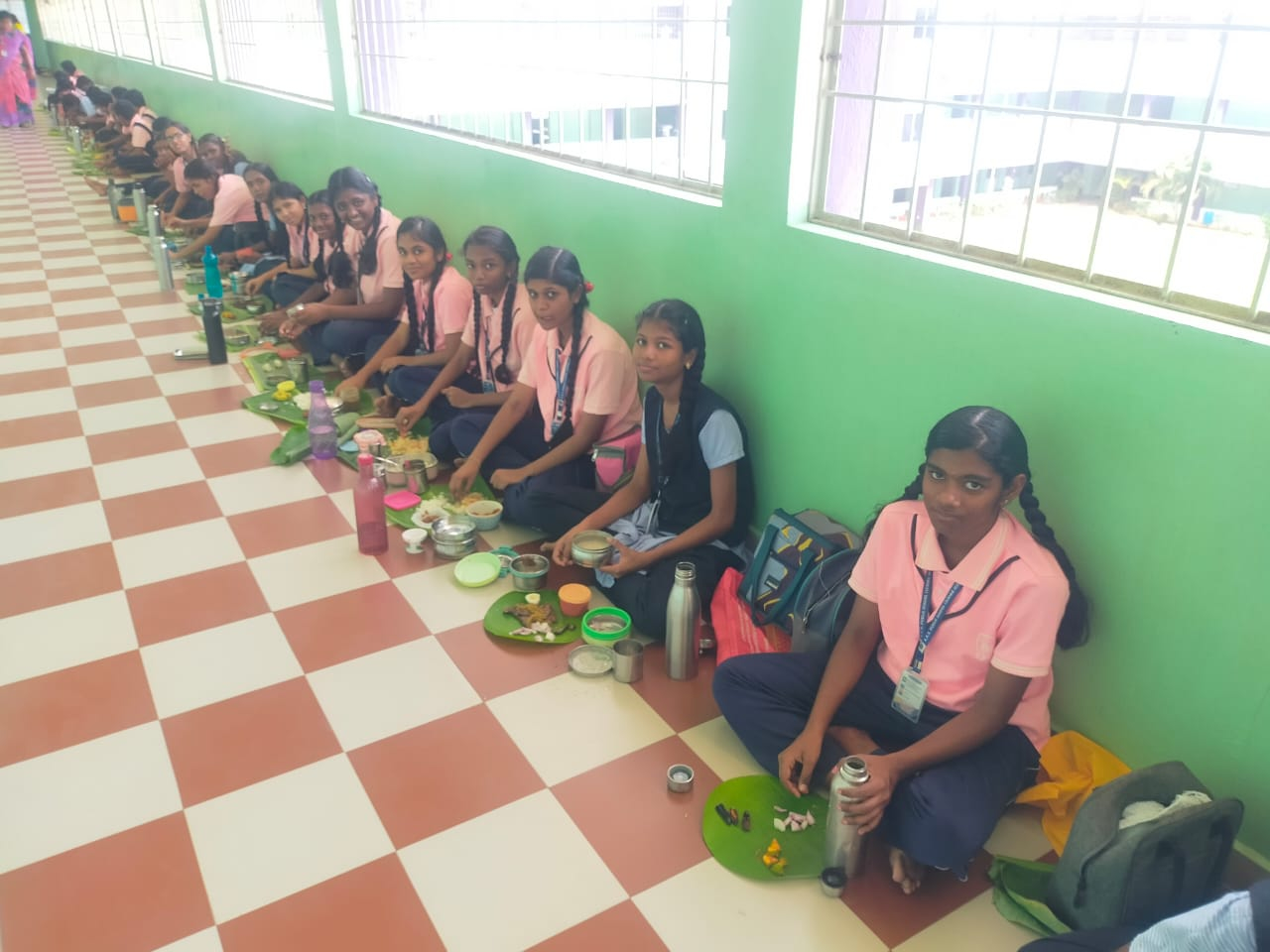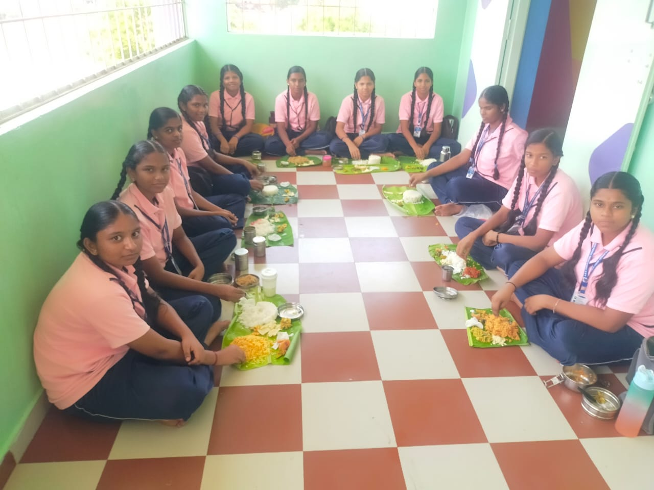 விருந்தோம்பலின் சிறப்பும் வாழையிலையின் மகத்துவத்தையும் உணர்த்தும் வகையில் வாழையிலை உணவு உண்ணும் செயல்பாடுகள் செய்தனர்.